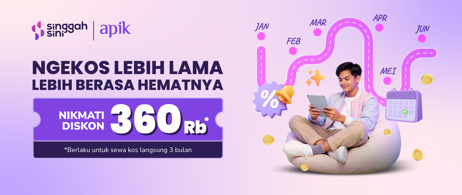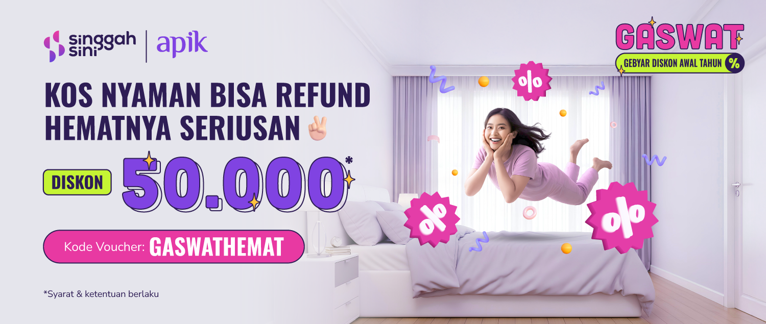 Bulan pertama jadi lebih ringan dengan diskon Rp50.000. Ngekos nyaman, awal tahun jadi lebih santai~